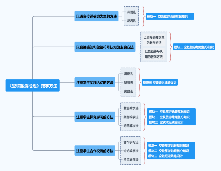 《航空旅游地理》课程为空中乘务专业群共享平台课。课程以“知识拓展、崇尚探究、注重实践、立德情怀”等多重目标来设计和实践,服务于民航运输综合型人才培养。本课程以集地理基础知识、旅游基础知识、国内外航空运输布局、国内外主要航线以及航空旅游线路策划为一体,共包括3个模块,总计48学时(含复习总结2学时)。其先导课程为《民航概论》,后续课程为《民航旅客运输》《民航货物运输》。