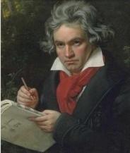 路德维希·凡·贝多芬出生在德国波恩,祖籍弗兰德。自幼学习音乐,很早就显露出了音乐上的才华,八岁便开始登台演出。十七岁那年,波恩宫廷大学旁听哲学,也就是在这时与莫扎特有了短暂接触。1792年,定居维也纳,经过海顿的指引,艺术上进步飞快,三年后出版第一部作品。他创作了大量充满时代气息的优秀作品,如交响曲九部;歌剧《费黛里奥》,戏剧《哀格蒙特》、《雅典的废墟》;钢琴曲《悲怆》、《月光曲》等等。