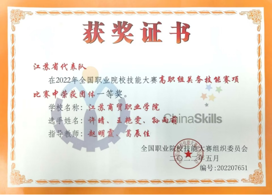 2014-2023年,关务与外贸服务专业学生代表队共获全国职业院校技能大赛关务赛项团体一等奖1项、二等奖4项;连续10年获全国海关商品归类赛项团体一等奖。