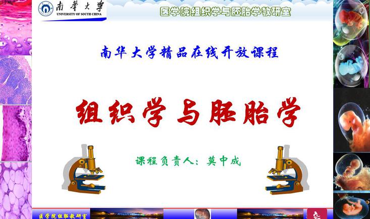 《组织学与胚胎学》是基础医学中的骨干学科,是临床医学、预防医学、口腔医学、护理医学、药学等的本科生、研究生的必修课。本课程中的组织学是研究机体微细结构及其相关功能的科学,是以显微镜观察组织切片为基本方法的,主要介绍上皮组织、结缔组织、肌组织、神经组织的结构特征以及器官系统中各器官的微细结构及功能。而胚胎学是研究个体发生和生长及其发育机理的科学,其研究内容包括生殖细胞形成、受精、胚胎发育、胚胎与母体的关系、先天性畸形等。通过学习组织学和胚胎学,使学生获得关于人体组织学与胚胎学的基础理论与基本知识;使学生得到与组织胚胎学相关的基本技能的训练;为学习其它基础医学与临床医学课程打下良好的基础。