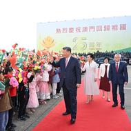 新华社澳门12月20日电 庆祝澳门回归祖国25周年大会暨澳门特别行政区第六届政府就职典礼20日上午在澳门东亚运动会体育馆隆重举行。中共中央总书记、国家主席、中央军委主席习近平出席并发表重要讲话。他指出,澳门回归祖国25年来,具有澳门特色的“一国两制”实践取得巨大成功,澳门发生翻天覆地的变化,国际影响