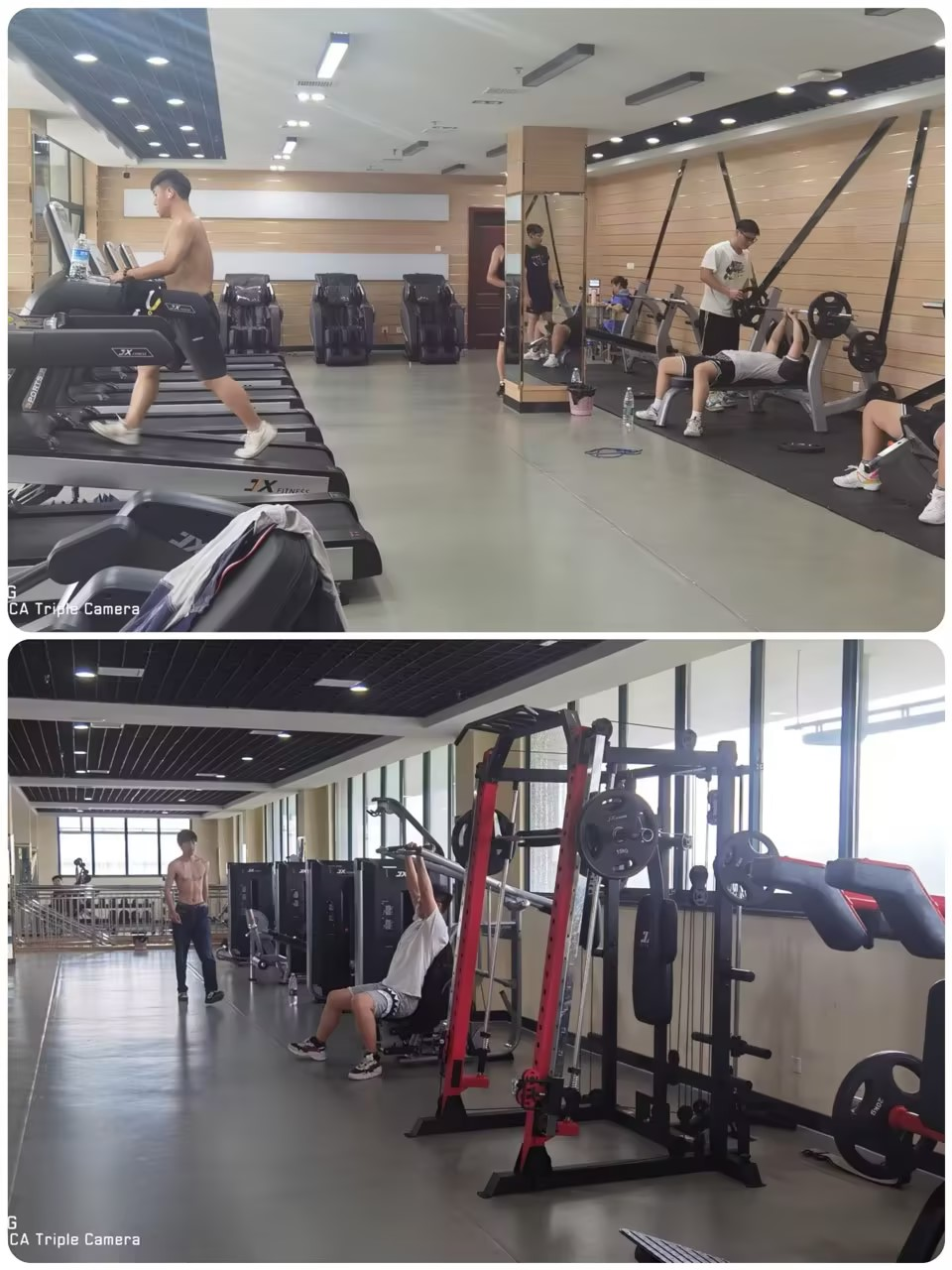 健身房 | 跑步机、椭圆机、卧推架、深蹲架等联合健身器材 | 若干 | 体能训练 |