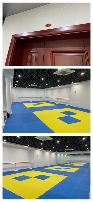 二楼建成啦啦操标准训练或比赛场地,满足学生训练、比赛需求;