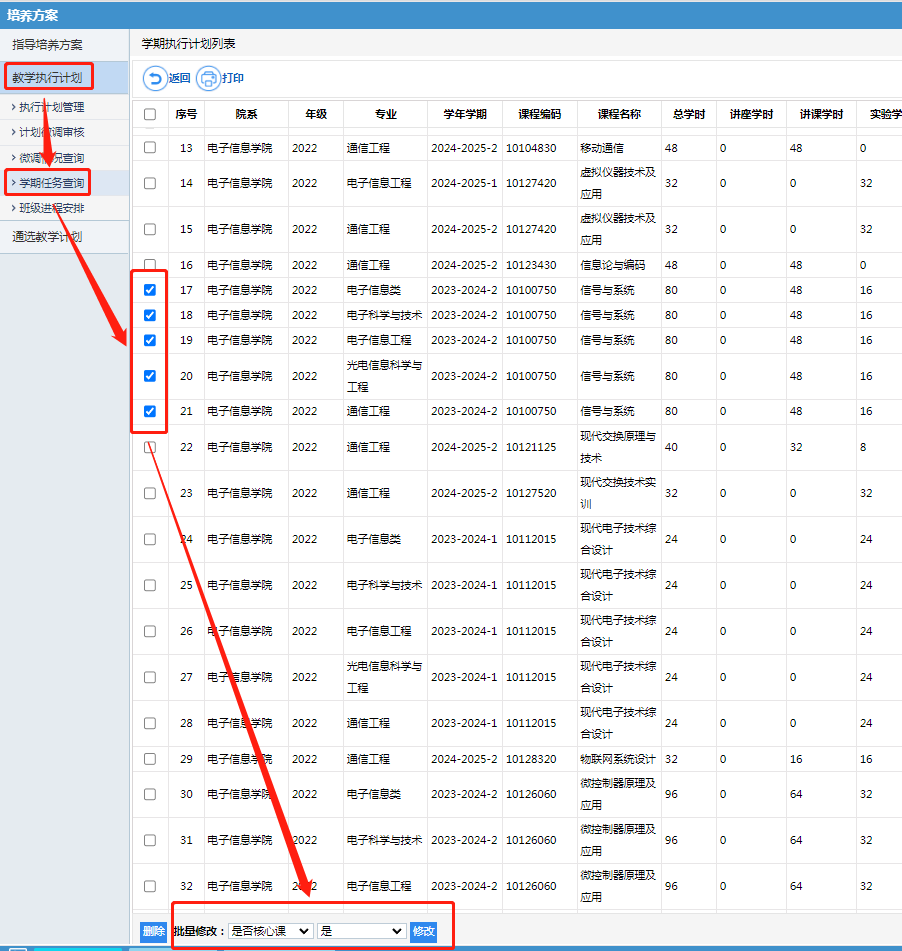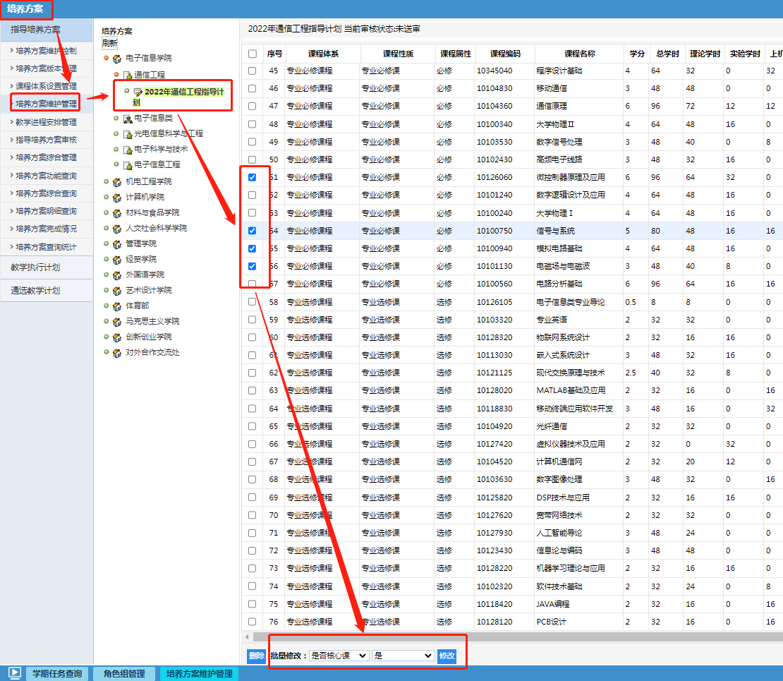 注意:只需要维护哪些课程是核心课程,不是的不用管。如不小心改错了,批量修改处选择空白,改回来就可以了。