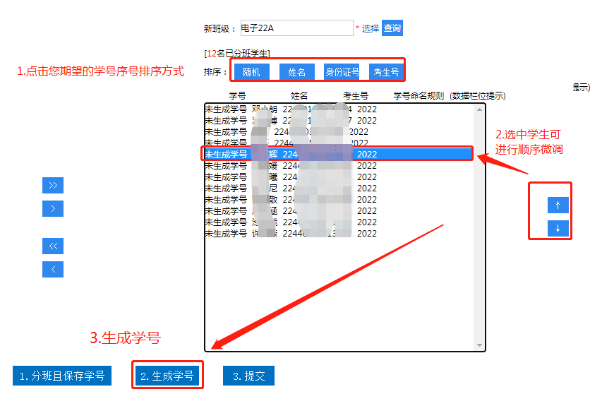 说明:在没有点击提交的情况下,如需要更新学号次序,都可以点击“生成学号”按钮。
