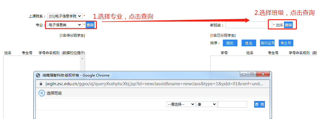 答:这个查询是用来查询所选班级的学号安排情况,也就是查询右侧窗口内容并写入班级信息,是一定要点的。