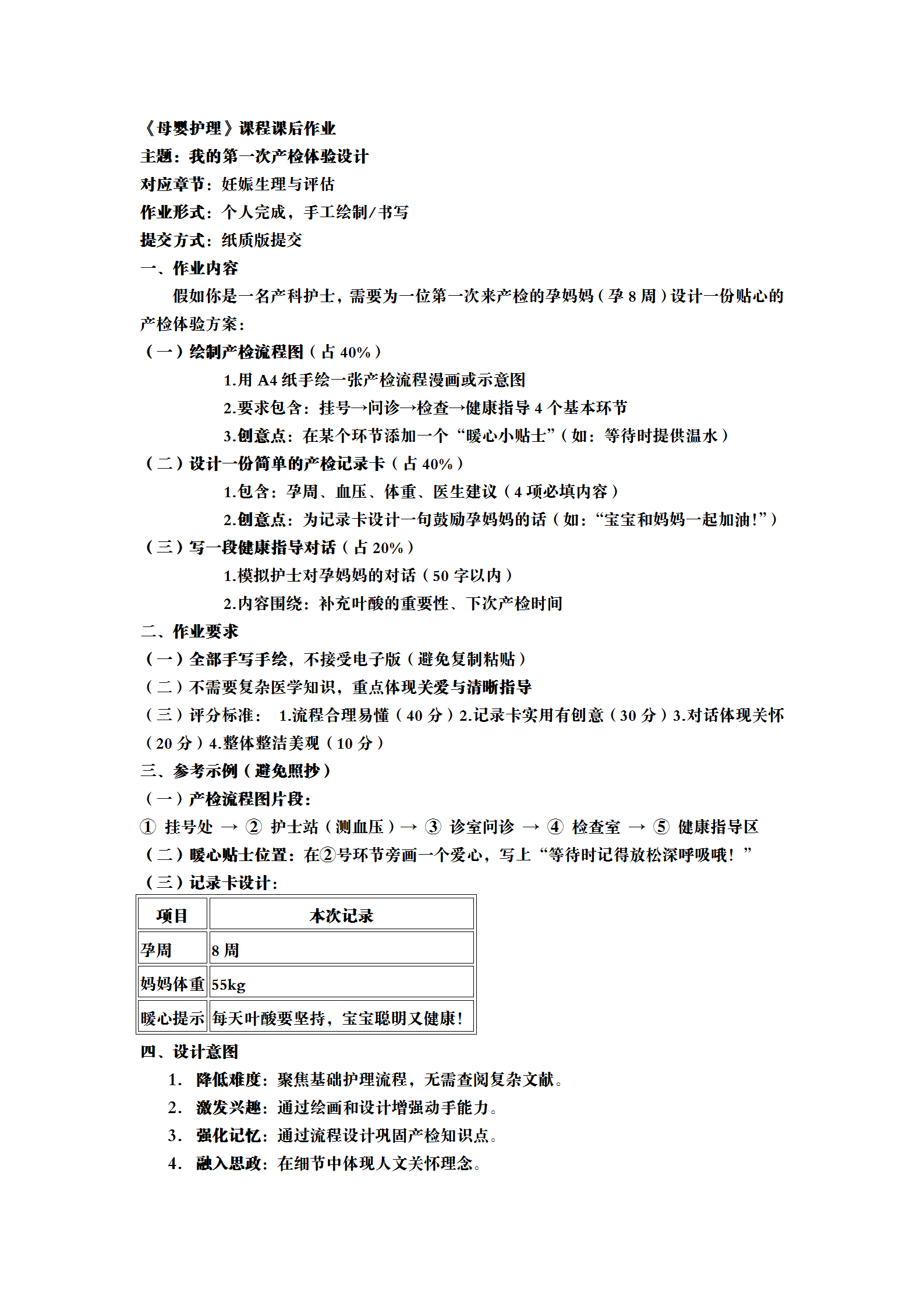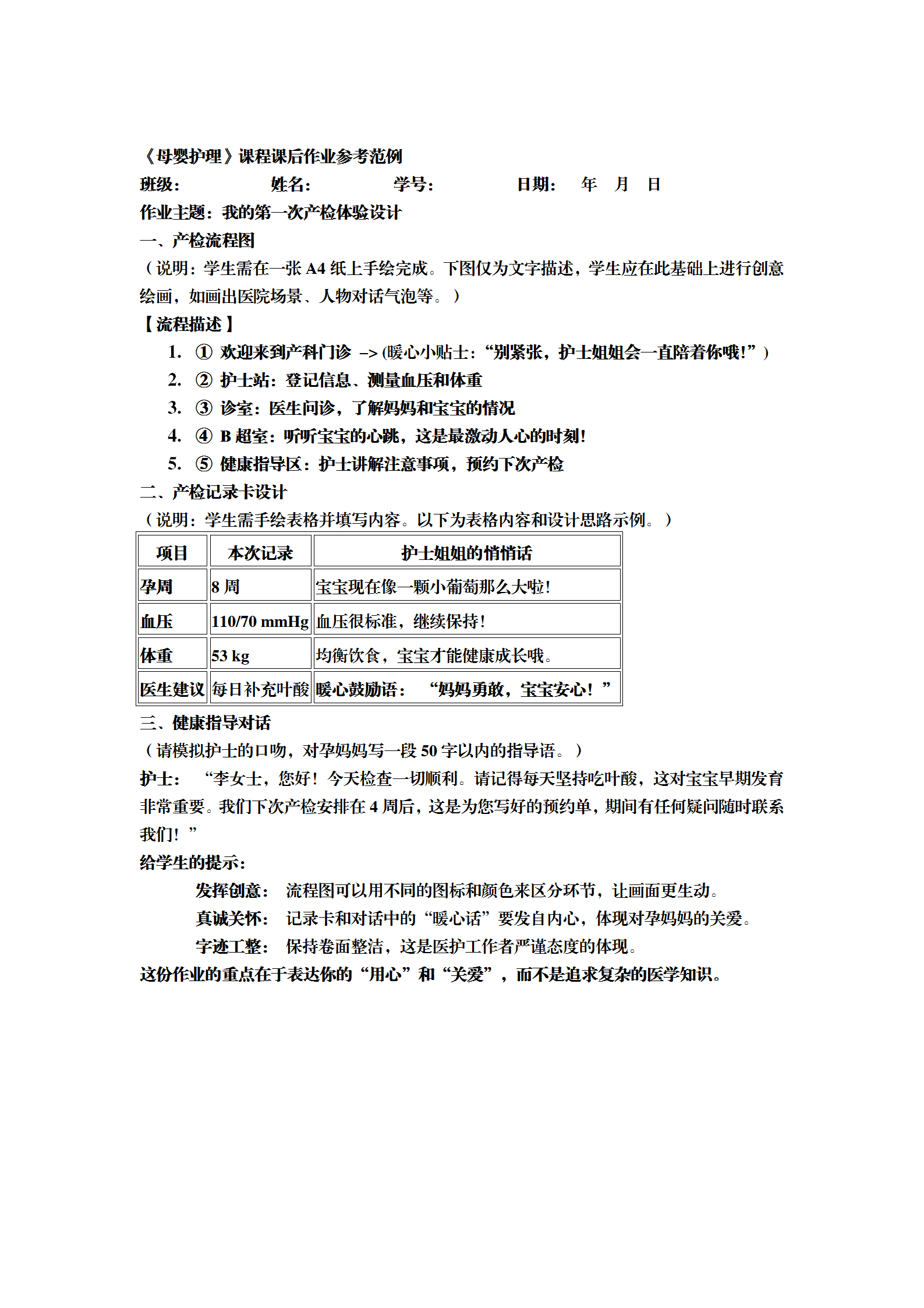 2.自主学习妊娠诊断与产前检查相关内容。 | |||
