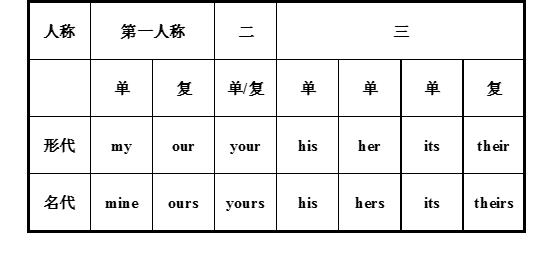 形容词性物主代词和名词性物主代词表
