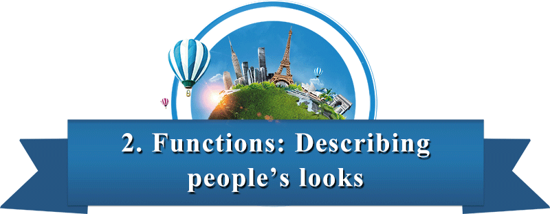 (1) 发型(hair style): straight 直的; curly 卷发的; pigtails 辫子; crew cut 平头; bald秃头的。