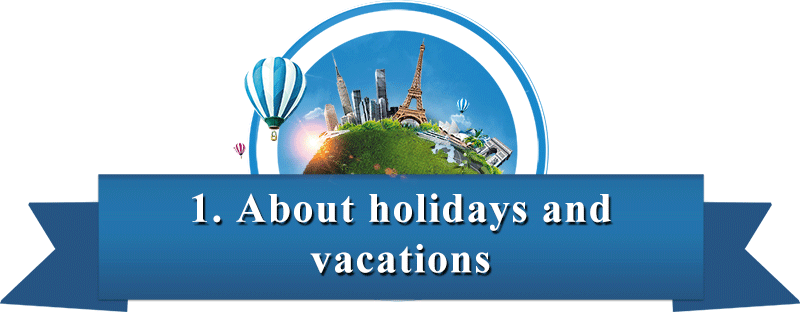 如果你是美国人,“假日”是指一个特殊的日子,好像圣诞节,而“假期”是指你会花两到三周的时间和你的家人出去旅行。