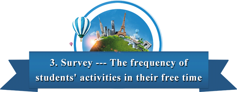 Part3 Survey 学完如何对频率进行提问和回答后,希望通过survey能让学生进一步掌握不同次数的表达形式。具体为:让学生看图表,图表上显示一周一次到七次的表达,同时听语音展示两位朋友对看电视、锻炼及使用网络次数调查的回答,最后思考:Who is healthier? 启发学生发现问题,并思考如何安排健康的课余活动。