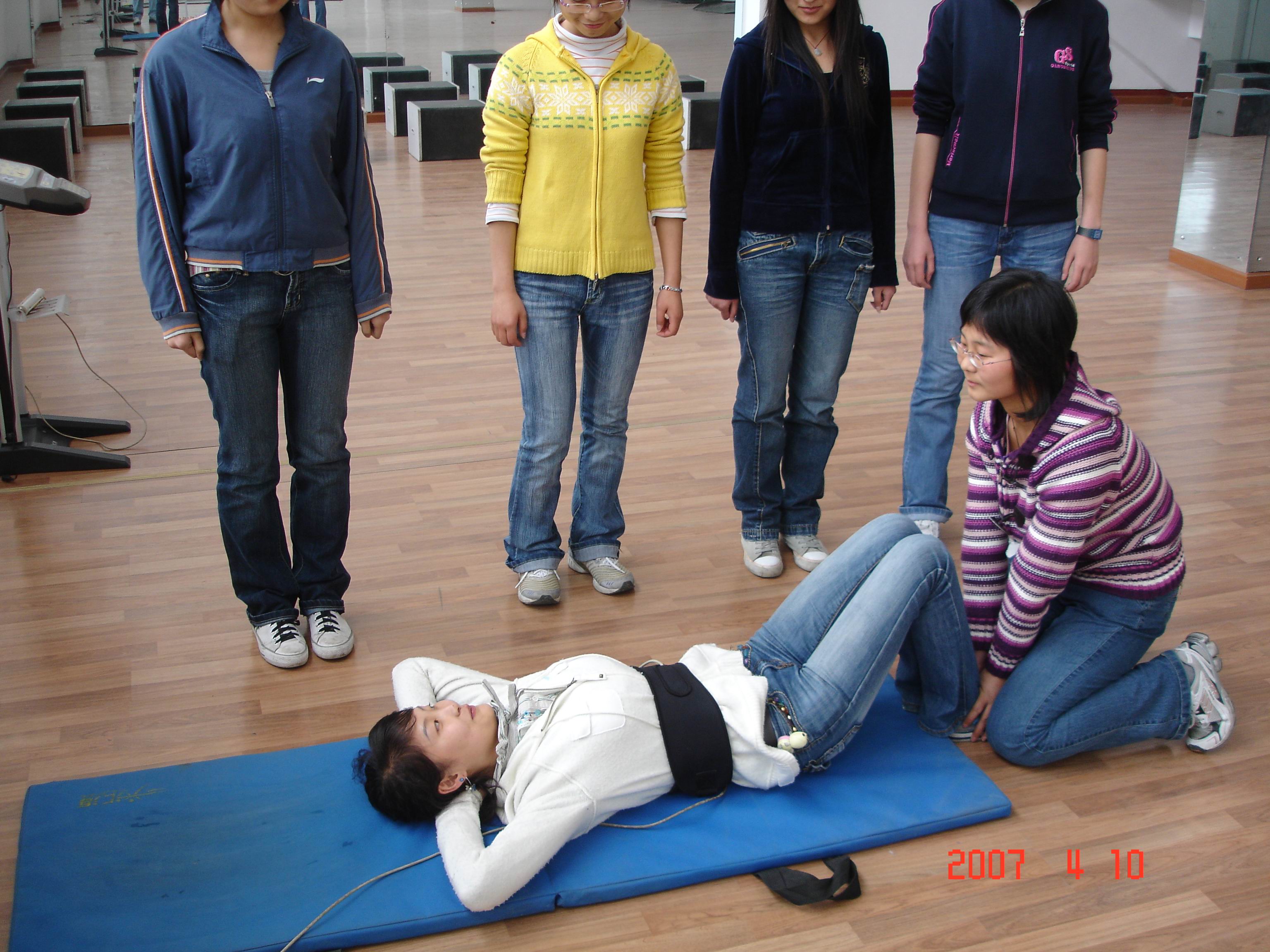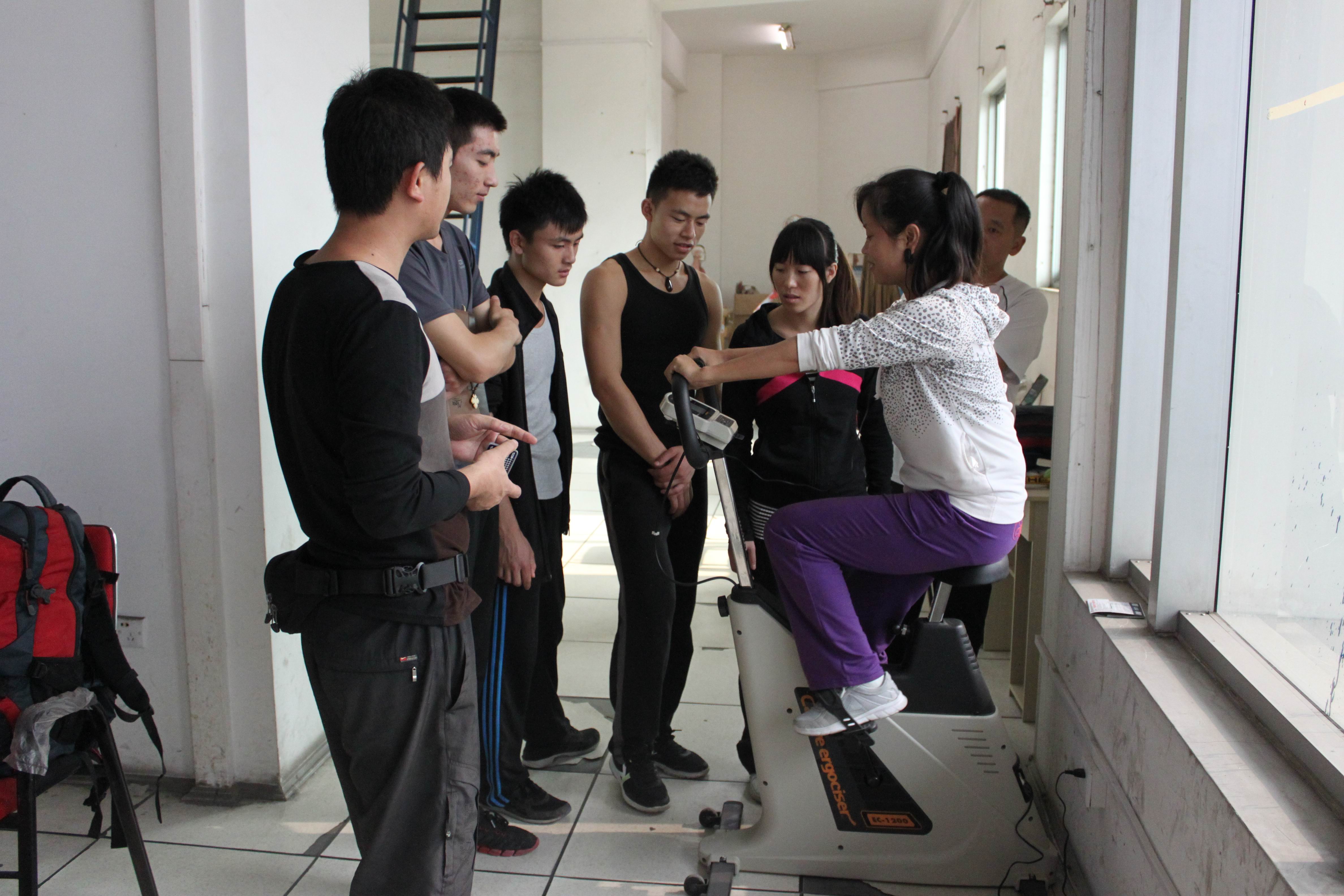 魏翠兰老师演示指导学生进行有氧功率测量实验