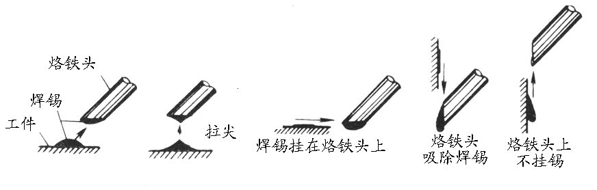 移烙铁:焊锡浸润焊片或焊件后,向右上450C方向移开