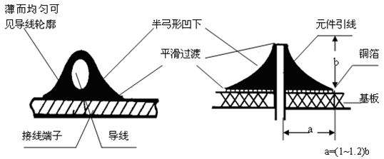 合格焊点要求:可靠的电气连接、机械强度足够强、光洁整齐的外观。