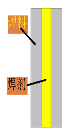 带焊剂芯的焊锡丝,腔体内充以焊剂,焊剂在常温下是固态的,但当焊丝熔化时,焊剂以液态流出,起到清洗氧化层,增加焊接润湿的作用,并在焊点表面固化。