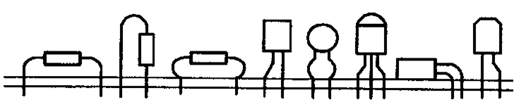 元器件成型大部分需在插装前弯曲成型。弯曲成型的要求取决于元器件本身的封装外形和在印制板上的安装位置。图2.11所示是印制板上的部分元器件成型插装实例。