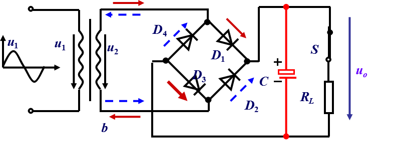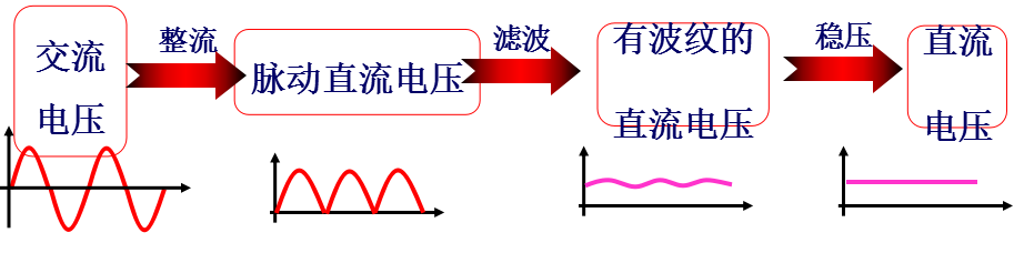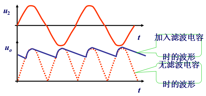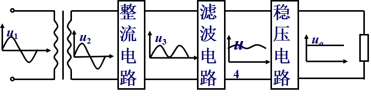 滤波电路: 将脉动直流电压u3转变为平滑的直流电压u4。