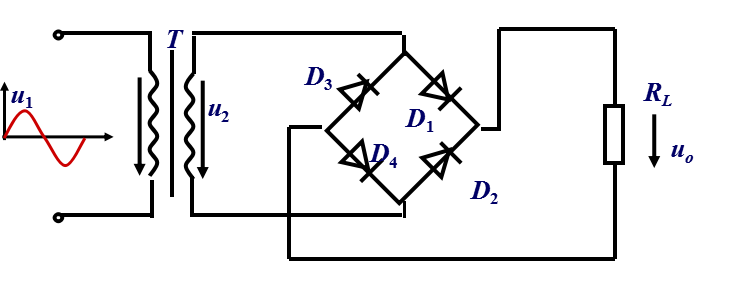 电源变压器: 将交流电网电压u1变为合适的交流电压u2。