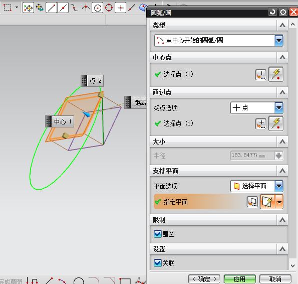 因此,在创建圆弧/圆的时候,一定有个环节是选择所在平面。