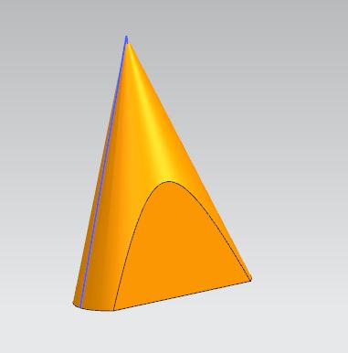 先绘制一个三角形截面然后绕一直角边旋转,获得如下图形,再用一个截面去分割,就获得了一抛物线,如果分割平面和轴线不平行,就可以获得一个椭圆。
