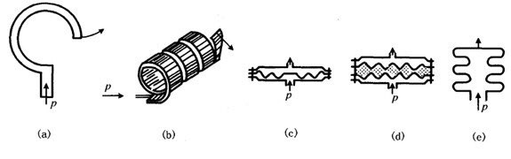 弹簧管、波纹管、波纹膜片、膜盒、薄壁圆筒、薄壁半球等。