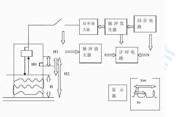 超声波测量液位的基本原理是:由超声探头发出的超声脉冲信号,在气体中传播,遇到空气与液体的界面后被反射,接收到回波信号后计算其超声波往返的传播时间,即可换算出距离或液位高度。超声波测量方法有很多其它方法不可比拟的优点:(1)无任何机械传动部件,也不接触被测液体,属于非接触式测量,不怕电磁干扰,不怕酸碱等强腐蚀性液体等,因此性能稳定、可靠性高、寿命长;(2)其响应时间短可以方便的实现无滞后的实时测量。