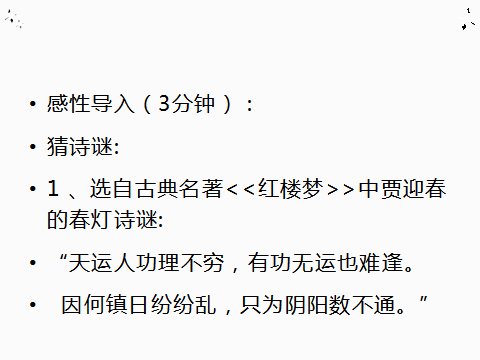 选自古典名著<<红楼梦>>中贾迎春的春灯诗谜: