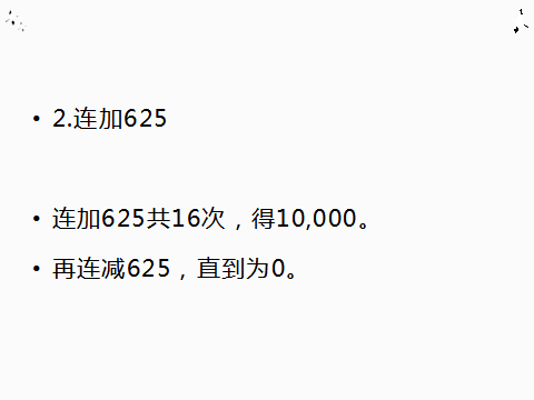 将32,260,738,125拨入盘,从左到右,见几加几,连加4盘,得516171810000。即“5.1”,“6.1”,“7.1”“8.1”。