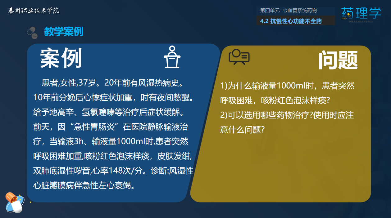 1.观看案例视频,分析用药史,学习抗慢性心功能不全药的分类和代表药