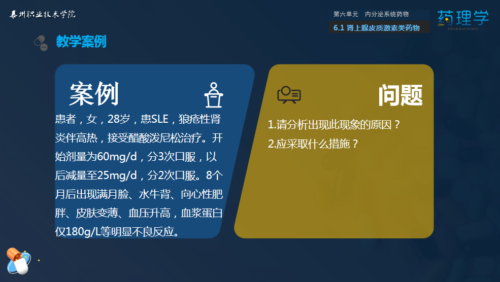 通过泛雅学习通《药理学》课程平台的课前自主学习,能对肾上腺皮质激素类药物部分的相关知识有一定的了解;通过课堂的学习讨论,能进一步掌握本单元重点和难点内容;通过课后的复习和作业,能进一步巩固并掌握本节课所有内容。