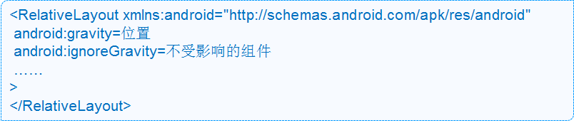 在XML布局文件中,定义相对布局管理器可以使用<RelativeLayout>标记,其基本的语法格式如下: