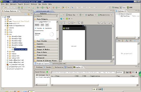 2、布局文件采用XML格式,每个应用程序默认包含一个主界面布局文件,该文件位于项目的“res/layout”目录中。