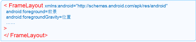 在XML布局文件中,定义帧布局管理器可以使用<FrameLayout>标记,其基本的语法格式如下: