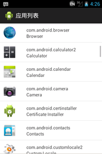 1)获取设备上安装的所有应用列表,将列表使用ListView展示在界面上。