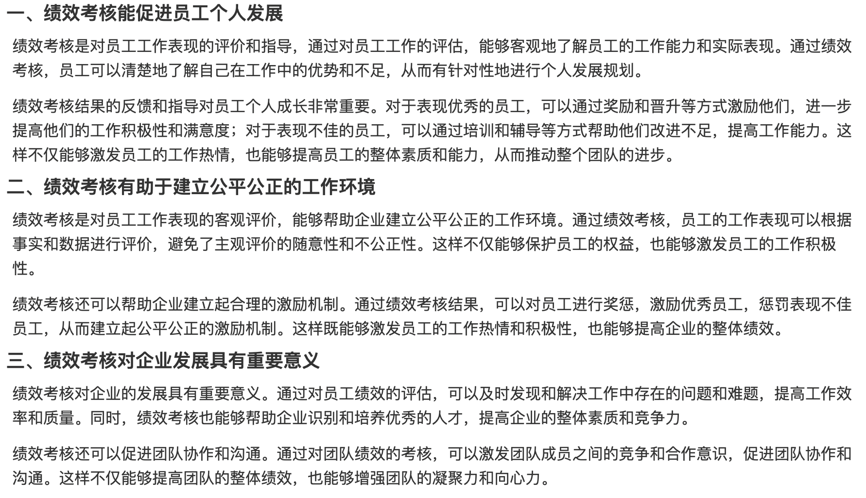 思考:你觉得绩效考核结果在企业、环境和个人中的重要性?