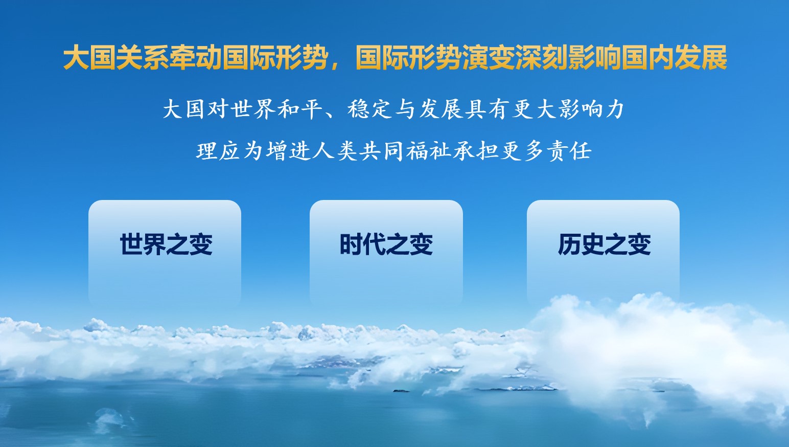 当前,世界之变、时代之变、历史之变的大潮奔涌而来,人类对和平与发展的呼声愈发强烈,对稳定性、可靠性、方向感的渴望更加迫切,各国比以往任何时候都更加需要团结合作,以宽广胸襟超越隔阂冲突,以博大情怀关照人类命运。党的二十届四中全会指出,大国关系牵动国际形势,国际形势演变深刻影响国内发展。大国对世界和平、稳定与发展具有更大影响力,理应为增进人类共同福祉承担更多责任。大国之间尤其要坚持不冲突、不对抗、相互尊重、合作共赢,为人类发展与进步作出更多贡献,展现大国应有的担当。