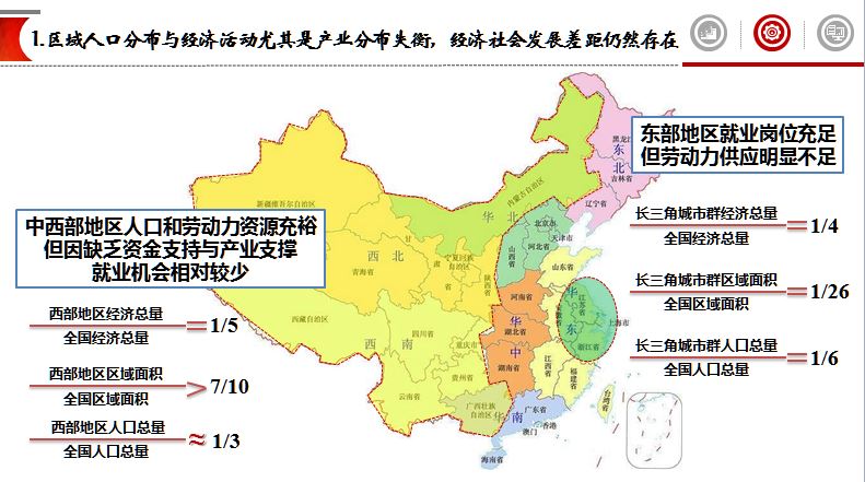 1.区域人口分布与经济活动尤其是产业分布失衡,经济社会发展差距仍然存在