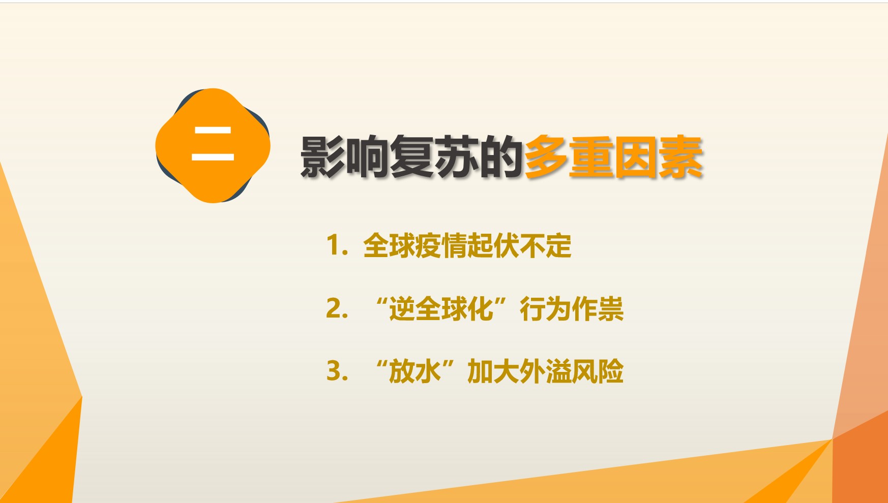 疫情已经改变了人们的生活,世界回不到过去的状态。当前,单边主义、保护主义抬头,经济全球化遭遇逆流。虽然世界经济正在复苏,但疫情持续反复、高度宽松的货币政策等因素综合作用,削弱了经济复苏的动力,拖累着世界经济的复苏进程。
