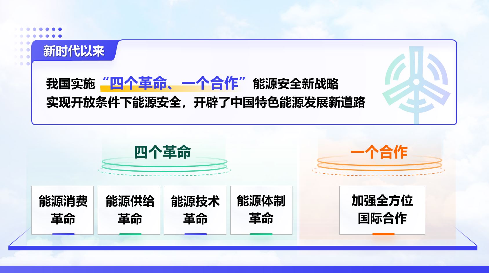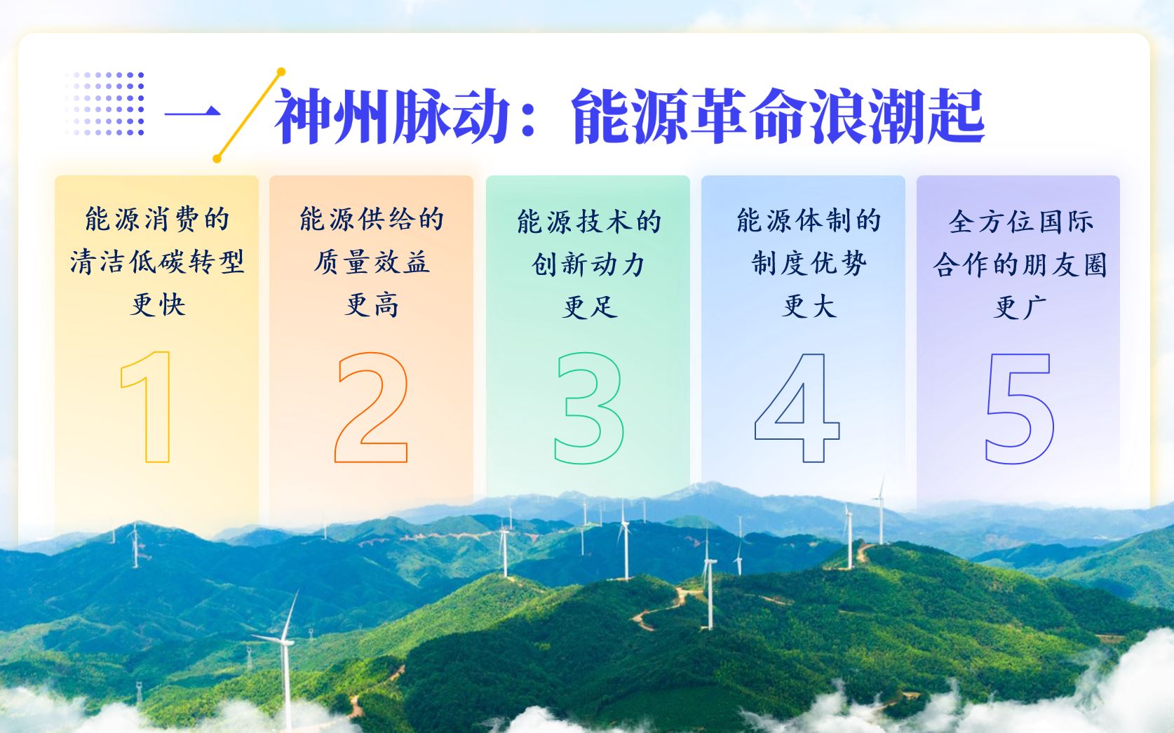 茫茫九脉流中国,纵横当有凌云笔。新时代以来,我国实施“四个革命、一个合作”能源安全新战略,推进能源消费革命、能源供给革命、能源技术革命、能源体制革命,加强全方位国际合作,实现开放条件下能源安全,开辟了中国特色能源发展新道路。放眼神州,百米地下,滚滚“乌金”智能开采无垠大海,巨型平台自主建造;广袤荒漠,光伏“蓝板”释放清洁能量……中国能源在世界的前行步伐令世人惊叹。