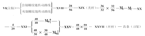 横向进给传动路线(以车常用公制螺纹为例)