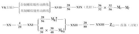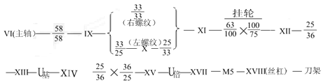 纵向进给传动路线(以车常用公制螺纹为例)
