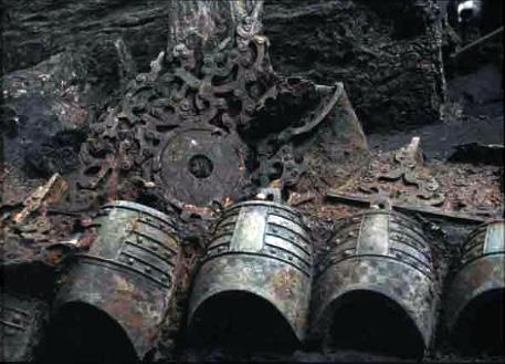 曾侯乙墓是战国时期曾侯乙的一座墓葬,呈“卜”字形,位于湖北随州城西两公里的擂鼓墩东团坡上。是本世纪一来最重大的音乐考古发现之一。墓中出土了一套举世罕见的乐器群,其中出土的曾侯乙编钟是迄今发现的最完整最大的一套青铜编钟,与编钟同出的乐器,有编磬一套及架、槌、匣等附件,有建鼓、柄鼓、扁鼓等鼓类,琴、瑟等弹弦乐器,均钟调律仪器,排箫、笙等吹奏乐器等等,构成了一个庞大的古乐队(沉睡千年的地下音乐厅)。