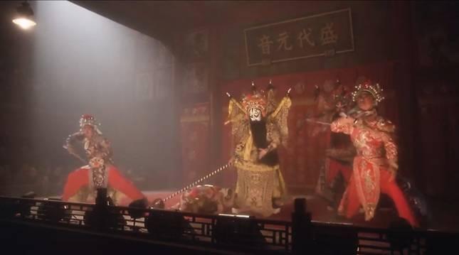 导演对于红色的运用可谓是驾轻就熟。片中的舞台布光都是暖调,色彩以红色为主,从第一次小豆子与小癞子偷跑看的“盛代元音”表演舞台,到小豆子与小石头的首次登台,到蝶衣与小楼成名后的演出,到《贵妃醉酒》,再到《牡丹亭》,所有的舞台场景都是以红色调为主,加上京剧华丽的戏服,给人美仑美奂的感觉。
