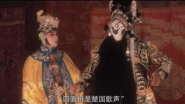 《贵妃醉酒》的演出舞台上,传单纷纷飘落,五颜六色,而身穿华丽戏服的蝶衣却醉情于表演,心无他物,灯光忽灭忽起,他却丝毫未受干扰,如痴如醉。旋转中的程蝶衣,完全是杨贵妃的化身,全情投入,可他在倒地的一瞬脸上却带有虞姬的悲壮。