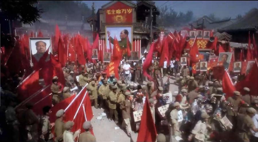 文革时,红色是触目惊心的,无论是红旗、红袖章还是菊仙上吊时的红色衣服、红蜡烛,都是时代的象征,传达了特定的时代背景与人物情感,是激情、是愉悦、是自由也是无奈、是悲伤,各种感情的混合,使影片的文化蕴涵更为丰富。同样是红色的运用但他所表达的人物情感和时代背景却有着极大的不同。