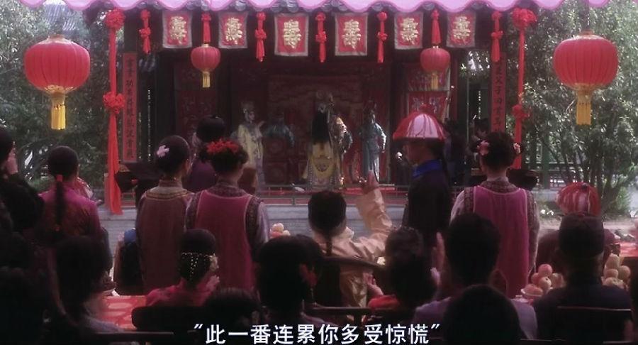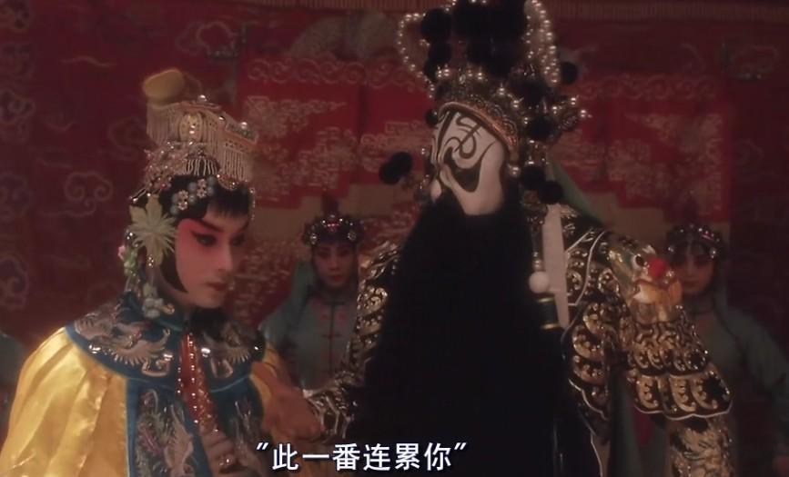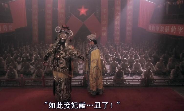二度上演:民国二十一年(1932年),张公公府上堂会,少年蝶衣与小楼第一次同台演出《霸王别姬》。最末一句唱的是:“此一番连累你多受惊慌……”,与蝶衣遭受张公公的蹂躏相呼应。