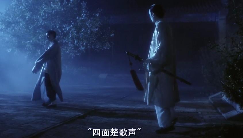 五度上演:袁四爷府邸后花园。被“霸王”遗弃的蝶衣,试图从袁世卿上妆后、那张似曾相识的脸上寻觅精神寄托。他口中轻唱的是:“汉兵已略地,四面楚歌声”,事实上,此时日本兵已经全面侵入北平,而蝶衣的心中,也早已是四面楚歌。