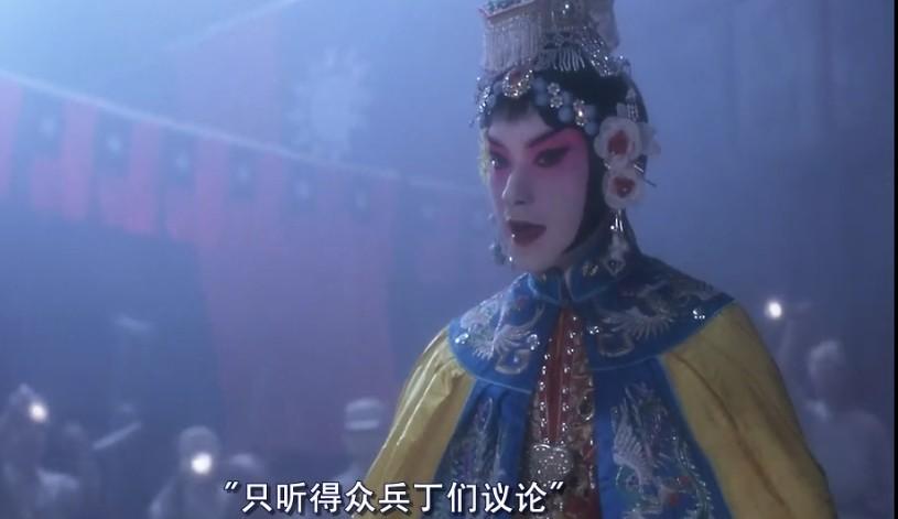 八度上演:文革前夕的戏台。这一次,戏台上的主角已经不是蝶衣。只因他对京剧艺术的追求与时局格格不入,“虞姬”一角被小四夺去。他只能在后台,看着他那明哲保身的“霸王”,与小四同演一出《霸王别姬》。霸王一声震彻云霄的“来也”,令他再度陷入绝望。
