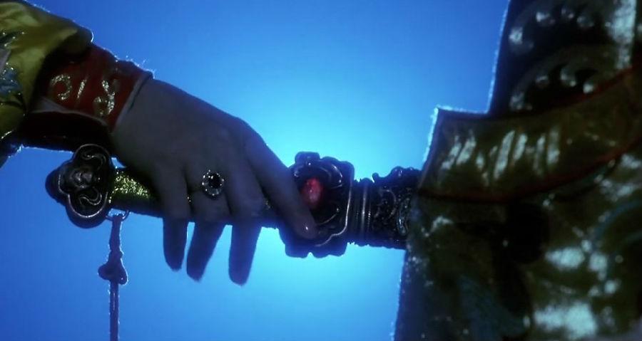 九度上演:文革结束,新中国的体育馆内,师兄弟相逢一笑泯恩仇。蝶衣用生命的代价上演了最后一出别姬,一遍遍地诉求:“快将宝剑赐与妾身”,剑落人亡,往事散如云烟。