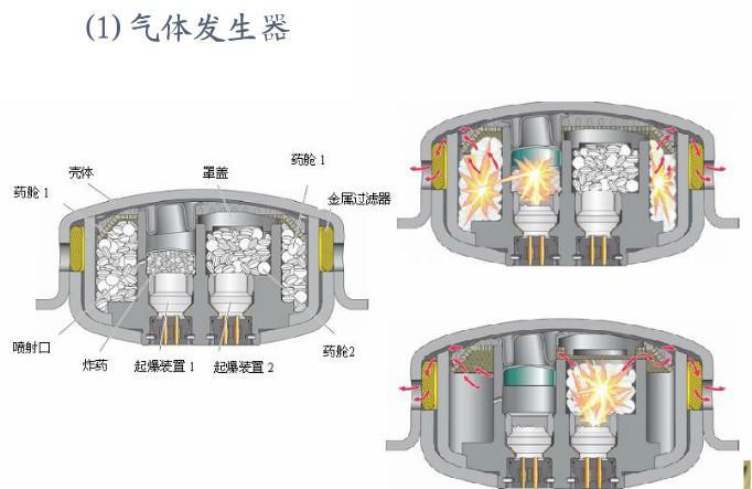 安全气囊工作原理示意图